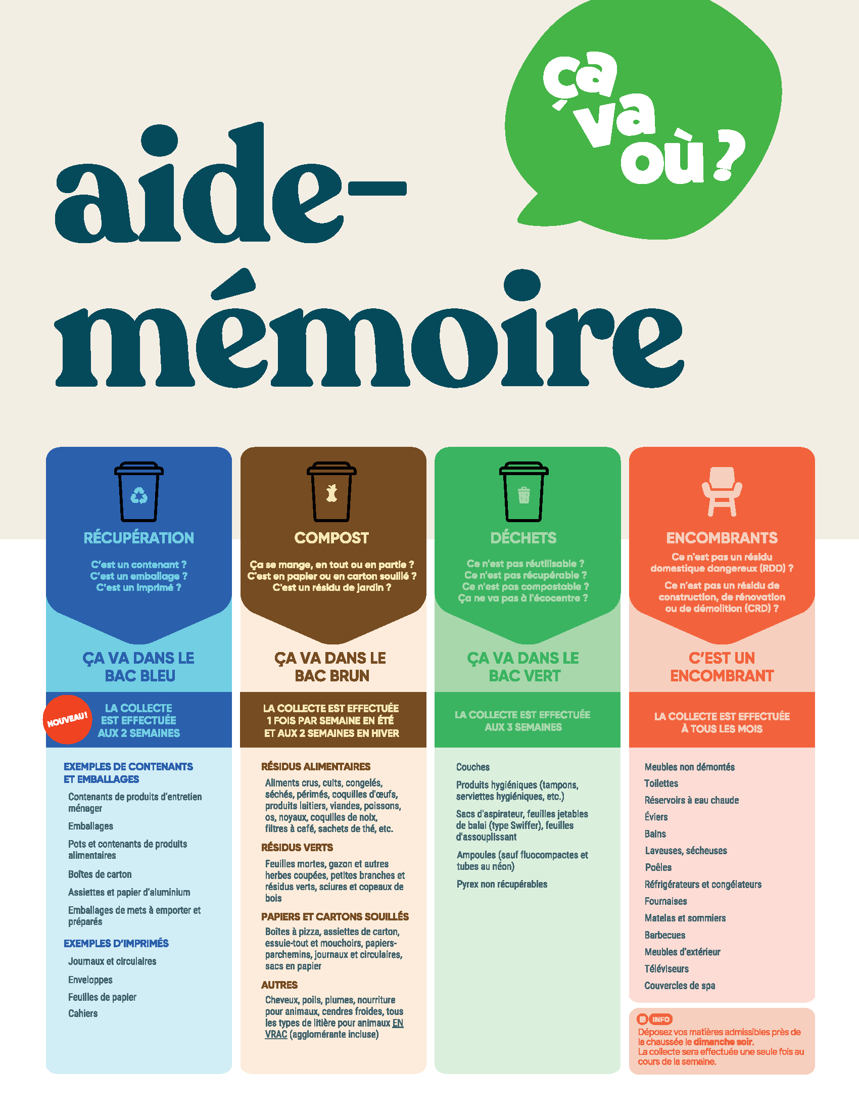 • Chaque citoyen est responsable du déchargement de ses résidus aux différents endroits indiqués pour chaque type de matière